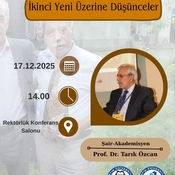 Prof. Dr. Tarık Özcan, modern Türk şiirinin önemli kırılma noktalarından biri olan İkinci Yeni hareketini ele aldığı bu konferansta, akımın poetik temelini, estetik arayışlarını ve Türk edebiyatındaki yerini yeniden değerlendirecektir. “İkinci Yeni Üzerine Düşünceler” başlıklı konuşmasında Özcan, şiirde imge, anlam, dil ve bireysel yaratım kavramlarını merkeze alarak İkinci Yeni’nin doğuşunu, gelişimini ve günümüz şiirine yansımalarını eleştirel bir perspektifle tartışacaktır. Şair ve akademisyen kimliğinin sağladığı çift yönlü bakışla, hem poetik hem de kuramsal açıdan zengin bir değerlendirme sunacak olan Özcan, dinleyicilere İkinci Yeni’yi yeniden düşünme imkânı sağlayacaktır. Bu konferans, çağdaş şiir tartışmalarına ilgi duyan herkes için nitelikli bir buluşma niteliği taşımaktadır.Tarih: 17.12. 2025